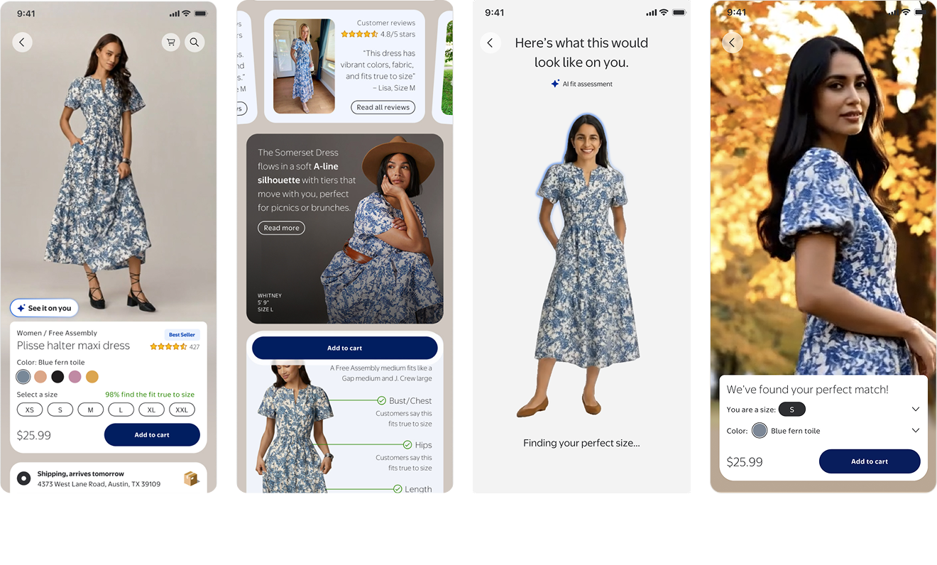 Walmart wanted to transform online shopping from overwhelming to intuitive. As Design Director, I led and owned the design for Walmart's AI-powered shopping experience, reimagining product discovery for millions of customers through multimodal search and personalized recommendations that help shoppers find exactly what they need—whether browsing complex electronics or discovering their perfect style. The platform bridges Walmart's physical and digital presence by using contextual intelligence to deliver confident, purchase-ready recommendations.